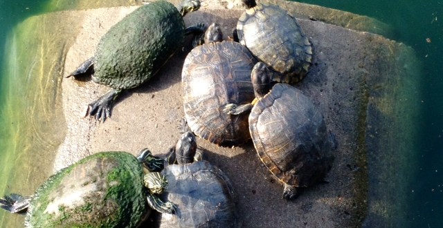 Years later, in a personal development seminar, my connection with turtles took on another layer. In an exercise to help us access unhealthy patterns in our behavior, the seminar leaders likened me to a turtle. Others were likened to other things: the messy teenager, the Barbie doll, the runner always on the starting line. The point of the exercise was to act out these roles in a darkened conference room with the facilitators staring sternly on, until our dramatizations began to sink in and have a sobering effect. My friend, the “runner stuck with her foot in the starting block,” sat on my back, and so for a while, we plodded along, giggling and smirking, refusing to take the exercise seriously. Soon, the facilitators separated us, and I found myself trundling over the carpeted floor on my own, confronting my lack of participation in the course, how I would poke my head out and say something once in a while, but not a steady contribution. Finding my voice was something I struggled with my whole life – as a child, I had difficulty making myself heard in a family of mostly extroverts and one very domineering parent — and emerging and retreating had become my pattern, as deeply etched as the ribbings on a turtle’s underbelly.